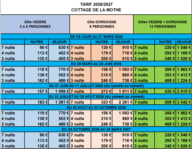 250 € pour le gîte VÉZÈRE